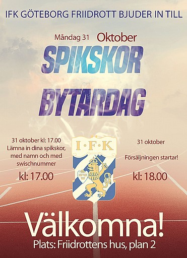 Måndag den 31 oktober kl: 17.00 lämnar du in dina spikskor men namn och swischnummer.