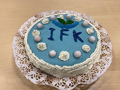 Lag: Hugo, Krille, Vera TC och Alva lyckades lägga beslag på mycket blåvita ingredienser och skapade en vacker IFK-tårta.