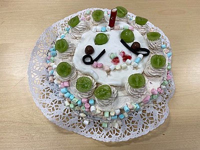 Lag: Albin E, Sebbe, Emma och Lisas tårta blev ett konstverk i sann Picassoanda och fick namnet Jean.
